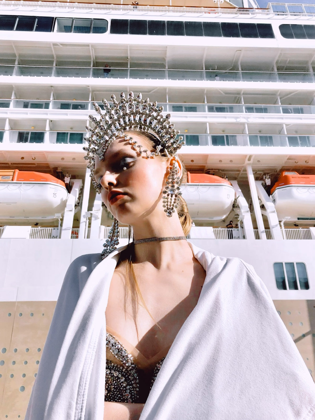 - Made of silver-plated headband with crystals.