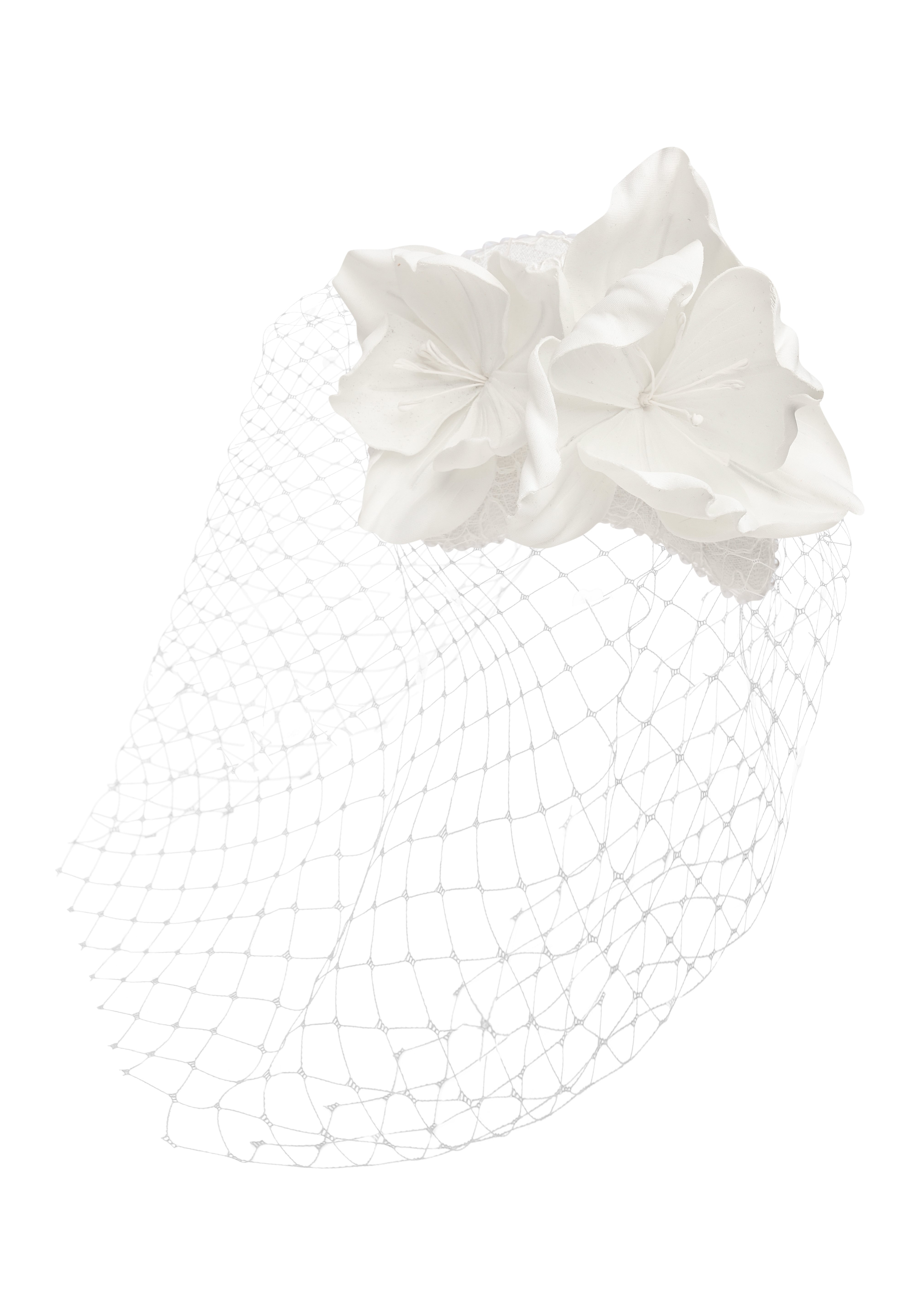 - Made of silk fabric flowers and voilette.