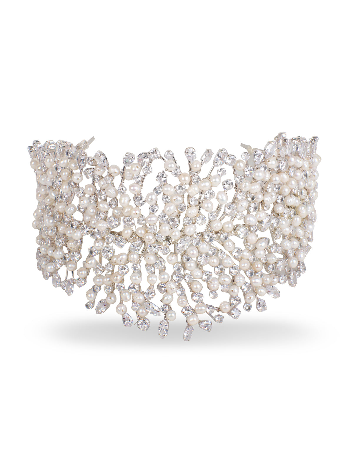 - Made of cultured pearls & crystals & silver plated brass.